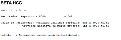 No mesmo dia desse exame que não deu certo, fomos ao laboratório fazer exame de sangue e tal. Dois dias depois, a constatação: